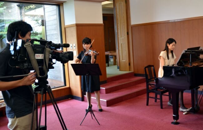 南九州ケーブルテレビネット「ようこそゲストさん」録画 執筆者 旅行人山荘 | 2015年9月2日 | スタッフブログ 10月4日(日)中堂園都乃・入来慶子デュオリサイタルが国分シビックセンターで開かれますが、そのプロモーション録画が旅行人山荘でありました。南九州ケーブルテレビネット「ようこそゲストさん」で9月16日から18日まで放映されます。美しいお二人のデュエットはなかなかのものできっとすばらしいコンサートになるはずです。詳しくはこちらのホームページにもあります。http://www.kkb.co.jp/event_detail.php?seq_id=848 関連記事 ミヤマキリシマが見頃です アンタレスと大隅と錦江と AEDが設置されました。 とある景色 靴底歩行清掃所