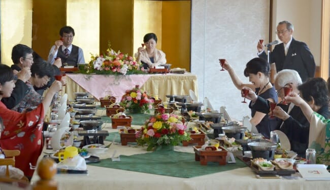 なんてすばらしいお祝いだろうと誰もが感激しました。遠くからお越しになって霧島神宮で挙式された後の披露宴の様子です。本当に内輪だけの少人数で、気心知れた皆様の心あたたまる披露宴でした。こんなすばらしいお祝いのお手伝いが出来ましたことを心からうれしく思います。